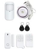 شامل دستگاه مرکزی، آداپتور برق، سنسور بی سیم حرکت، سنسور بی سیم در و پنجره، آژیر، ریموت کنترل (2 عدد)، تگ (2 عدد) می باشد.