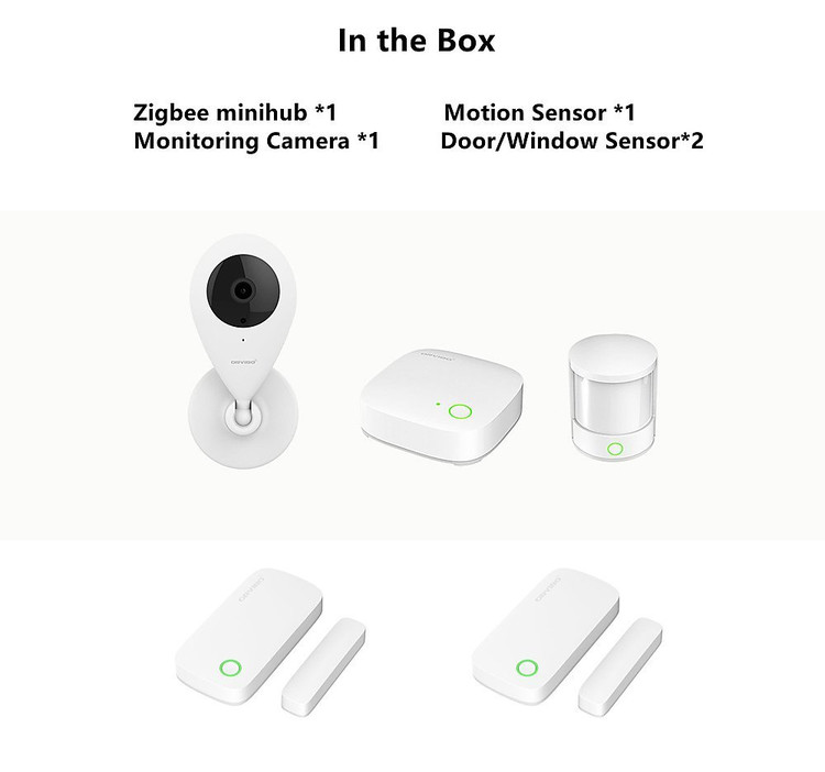 علاوه بر این تمامی تجهیزات این پک امنیتی با سایر تجهیزات خانه هوشمند Orvibo از جمله کلیدهای روشنایی متصل شده و از سناریوهای مختلف اورویبو بهره برد. به عنوان مثال به محض ورود به منزل چراغهای روشنایی روشن گردد.