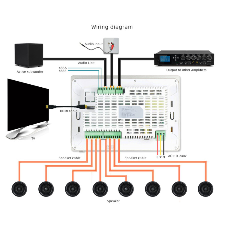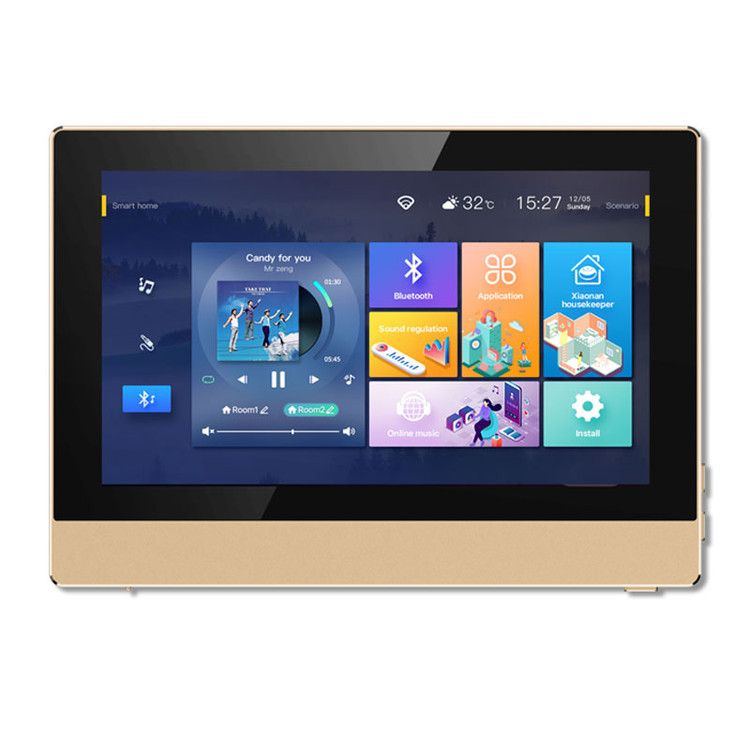 توضیحات: پنل صوتی دیواری اندروید (ورژن 8.1) با دور فلزی، منطبق با نرم افزارهای هوشمند مانند TUYA، ورودی های USB و SDکارت، بلوتوث، AUX ورودی، AUX خروجی، HDMIخروجی، ریموت کنترل IR، برق ورودی 220ولت AC