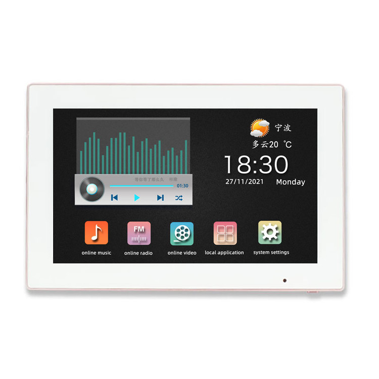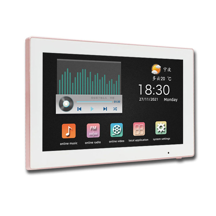 توضیحات: پنل صوتی دیواری اندروید (ورژن 7.1) با دور فلزی، ورودی های USB و SDکارت، بلوتوث، AUX ورودی، AUX خروجی، HDMIخروجی، برق ورودی 220ولت AC